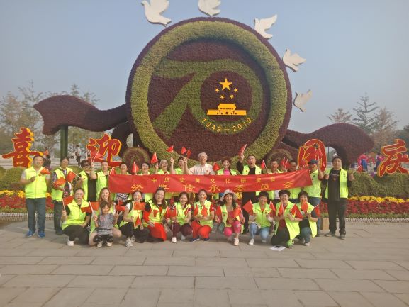 我与祖国共成长——庆祖国70华诞健步走 2019-09-29 / 举国同庆共和国70华诞之际,由中华炎黄文化研究会经典传承工作委员会 、公益绿主妇志愿服务队主办的“我与祖国共成长庆70华诞”健步走活动在南海子公园举行。 9月28号一大早,从四面八方赶来的经典传承工作委员会的会员和公益绿主妇的志愿者们齐聚位于大兴区南海子公园,大家兴奋的用心装扮自己,争相索取五星红旗,大家兴奋的来到迎国庆花坛前留念拍照,大家用一曲“我和我的祖国”表达对祖国70华诞的祝福,用齐唱国歌的方式表达对祖国的热爱。然后大家步入公园开始健步走,在美景中强身健体,享受生活,感受祖国的繁荣富强。 文章分享二维码