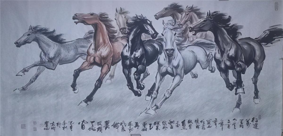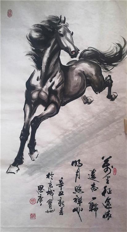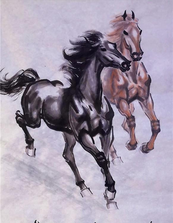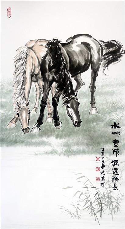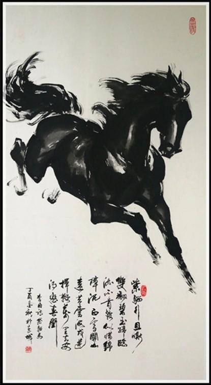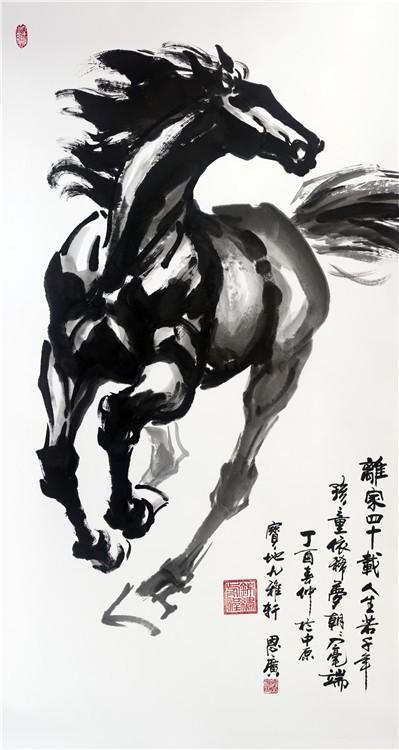 记得三十年前看他的油画,那样绚丽的色彩、深邃的意境,真使人如入画里,流连忘返。再看他近年来的中国书画作品,无论是人物、花鸟、山水,还是书法,你都能感觉到那种交响乐一般的明快清晰的节奏、酣畅优美的韵律,那种遒劲苍茂、金石镌刻般的笔墨功力,启发你无尽的联想……。尤其看德霖画的骏马,那种厚重磅礴的博大气势、那样饱含深情又包容万物的情怀、那样钢铁般的意志和深深的柔情、那样一种生生不息的天地精灵,相信谁都会被吸引到画中的。问及画马的感受,德霖常说画马就是在画自己!他将自己的灵魂都赋予了骏马,这生灵能不活起来吗?!