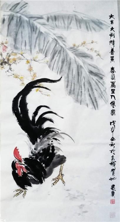 每当我们聊起书画的题目,一种艺术的潜能总能被他朴实无华的话所启发所唤醒。他经常说艺术的最高境界是“雅俗共赏”,“一件成功的艺术品会给人一种强烈的震撼,会引导人去思考人生、感悟生活,而不是作品本身的技法。好的作品应该给人们的生活带来美好的祝福和快乐,引导人们去追求世间的真善美。 所有的技法手段都是为这一目的服务的,无论东方西方,追求艺术的境界是完全一致的。因为文化艺术、自然科学是人类的共同财富”。 我对书画艺术一知半解,对西画国画等专业学术技能涉猎不深,但凭我多年来对古今中外千百幅名作的欣赏研究,直观感觉告诉我,德霖对艺术的思考和研究是很深刻很精粹的,乃真知灼见也!艺术的本真不就是激情的脉动灵魂的倾诉吗?!只有能震撼心灵的作品才有永恒的艺术生命。欣赏他的书画作品正是这样的感受:真挚又激情,酣畅而深沉,苍茂古朴,遒劲峻美,坚若金石。在深厚的传统笔墨功夫中融入了西画严谨写实的造型技法,和非洲等地域的响亮强烈的色彩,使人感受着博大善美的激情和沉稳浓厚的和善吉祥之气。我想这才是文化艺术的灵魂。
