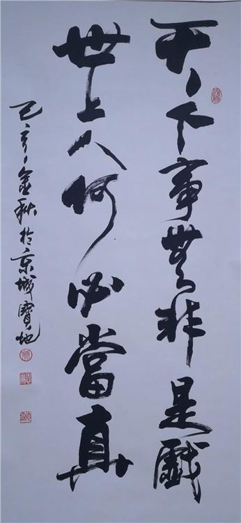 首先我遇到的难题 也是一直使我感到困惑的问题是除了老弟、朋友、老师、伙伴,我实在不知道该称呼他是什么“家”什么“者”,无法按其学术学识归属归类。 首先他是个学者,遍读古今中外文学名著,而且哲学、佛学、道学以及各类自然科学无所不学。书籍始终陪伴着每一天的生活;他又是个文学家、诗人(他可从不认可这些虚名,只说自己是个读书人),从学生时期直到如今的花甲之年,德霖已创作了古体诗、词以及现代抒情诗一百多首,且学术严谨、情感炽烈、节奏明快、韵律优美,文字质朴悠扬。尤其是年轻时遭遇坎坷命运的作品,读起来催人泪下,又使人坚韧顽强。中年后的诗文又是新一种感受:平和、清淡、恬静、优雅;他对音乐戏曲也十分喜爱,做过宣传队长,排过戏,练过功夫,做过京剧琴师,爱玩各种弦乐器,且堪称行家;对宗教的研究尤其是对佛教学的研学是从哲学的角度切入,几十年来从未间断。这一切用他的话说都是做人做学问的基本修养,更是书画艺术必须具备的营养元素。 当然书画艺术更是德霖一生的爱好,他说从小就上瘾成嗜好了!“读书做书画是我的一种生活习性和生活方式,是生活的一部分。正如同每天要喝水吃饭一样,是自然而然的本能”。我比谁都感触更深:这就是他,这就是他的生活。