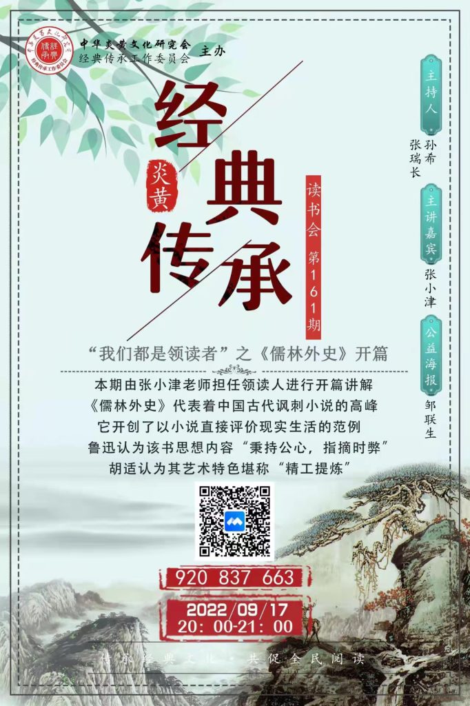 2022年9月17日,炎黄经典传承读书会161期读书会如期而至,周六晚上的八点到九点,读书会的学员们,已经养成了习惯,大家会在八点之前准时进入腾讯会议,一起学习经典,品文化。